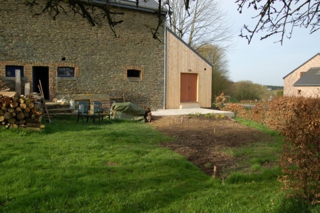 Na alle verbouwingen was er binnen te weinig ruimte om bouwmateriaal, gereedschappen en tuinmeubilair op te slaan. Bovendien moest het middengedeelte met de koeienstal nog opgeknapt worden.