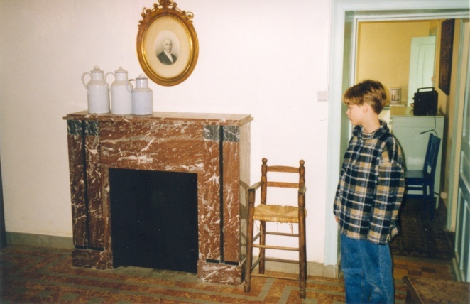 De achterkamer heeft een schoorsteenmantel van Belgisch rood marmer.