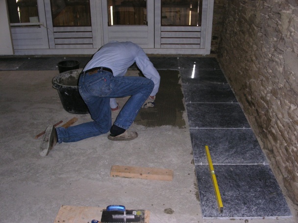 2005, mei. De vloer wordt gelegd met Belgisch hardsteen, 60x60 cm.